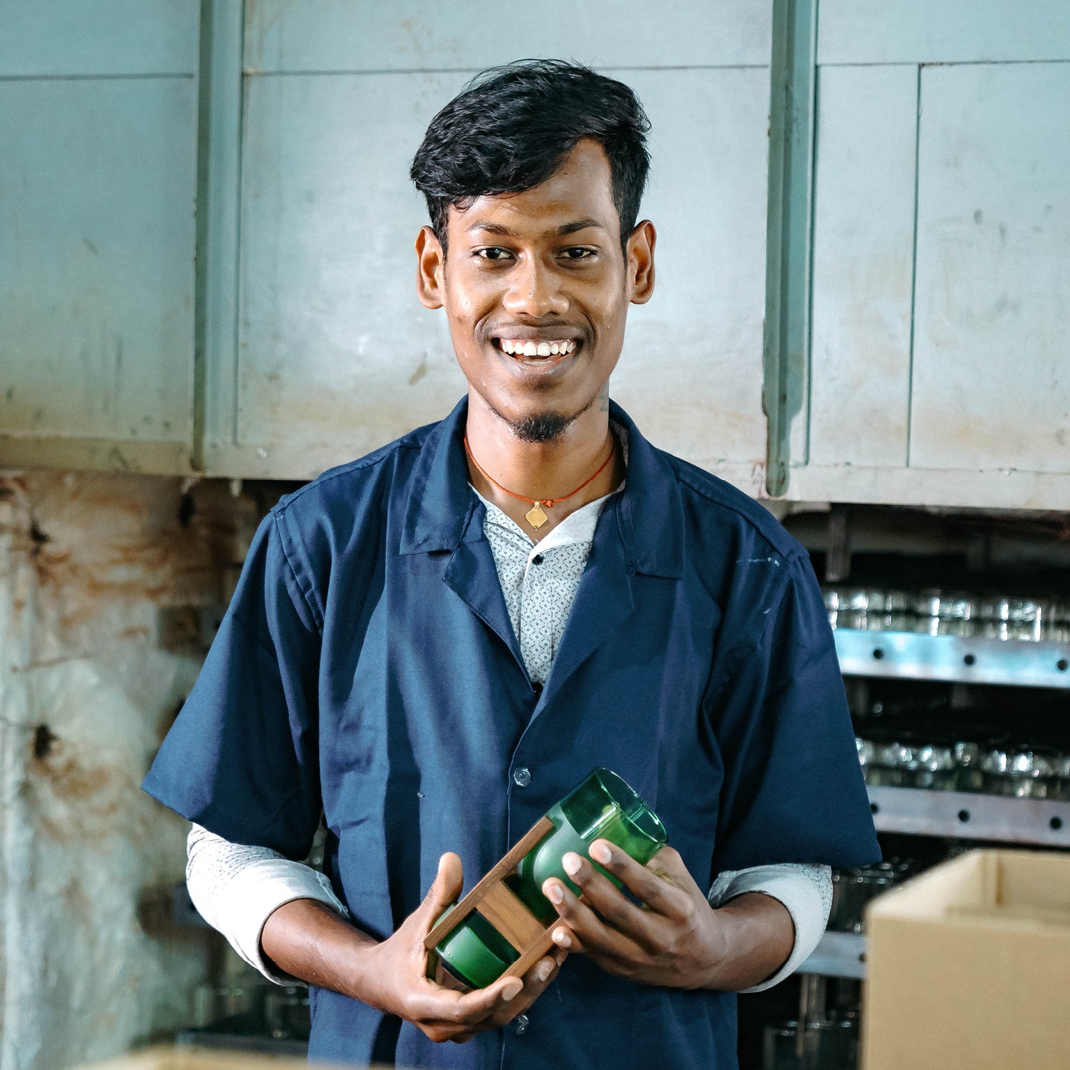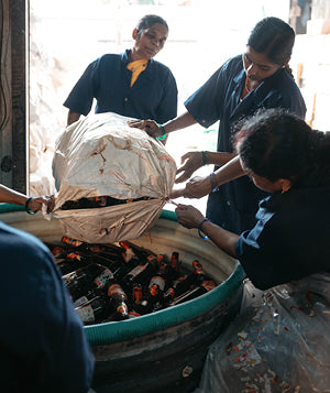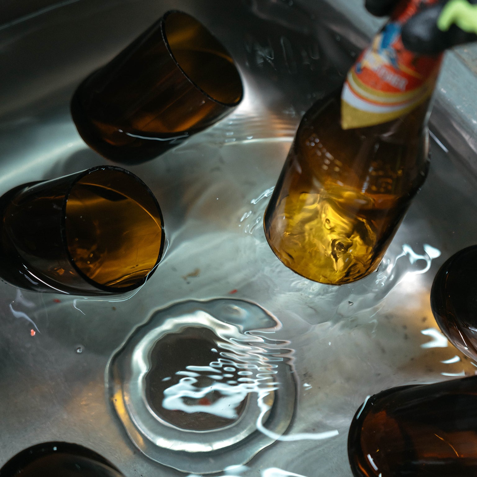 Here's where the magic starts! Our skilled artisans wield their glass-cutting tools like pros, carefully shaping the bottles into vases, glasses, and all sorts of sleek new forms.