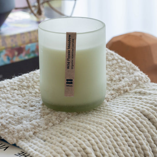 Organic Scented Candle "Wild Flower Meadow" - 100% UPcycled Glass Container - 18/20 Hours Burning Time
