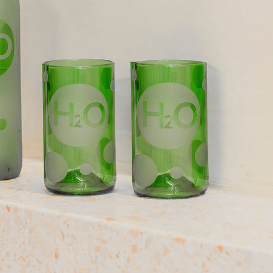 UPcycled Tall "H2O" Drinking Glasses - Set of 6 - 350 ML - Sustainable Water Glasses