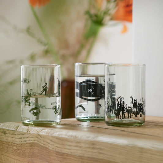 UPcycled Korte "Belgian Cats" Drinkglazen - Set van 4 - 300 ML - Duurzame waterglazen