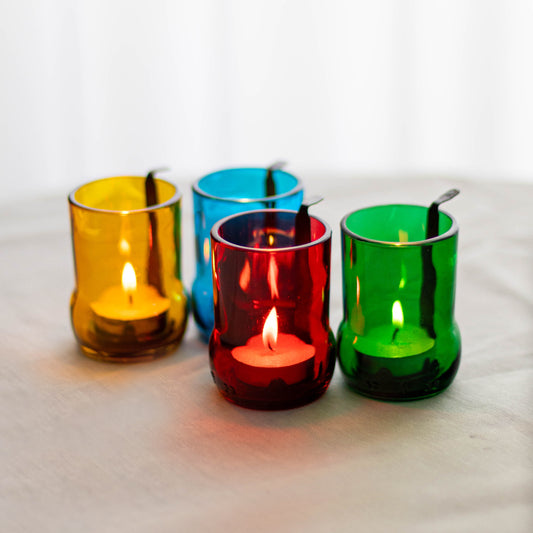 UPcycled "Gekleurde" Theelichthouders - Set van 4 - Duurzame kaarsenhouder