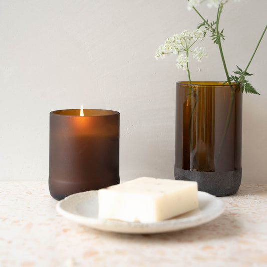 Organische Geurkaars "Mysterious Forest" - 100% UPcycled Glazen Houder - 18/20 Branduren