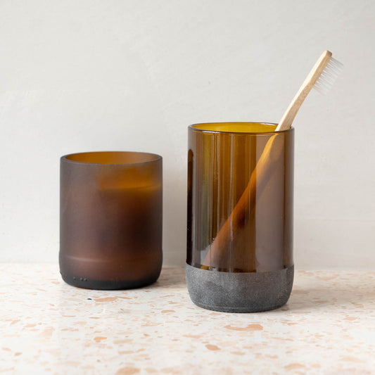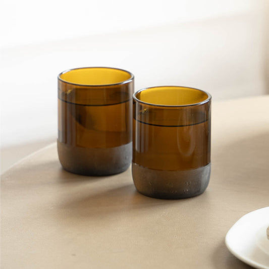 UPcycled Korte "Kastanjebruine" Mat Drinkglazen - Set of 6 - 250ml - Duurzame waterglazen