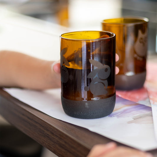 UPcycled Korte "Dieren" Mat Drinkglazen - Set van 6 - 300 ML - Duurzame waterglazen