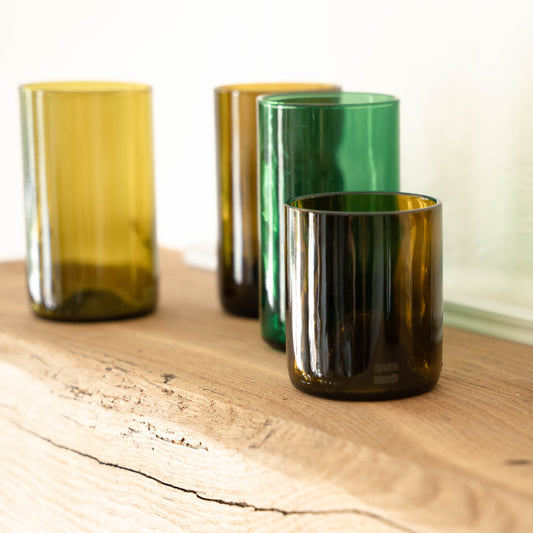 UPcycled Korte "Olijf" Drinkglazen - Set van 6 - 250ml - Duurzame waterglazen
