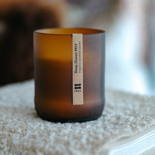 Organische Geurkaars "Deep Ocean Mist" - 100% UPcycled Glazen Houder - 18/20 Branduren