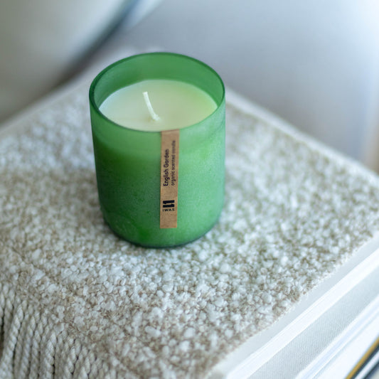 Organische Geurkaars "English Garden" - 100% UPcycled Glazen Houder - 18/20 Branduren