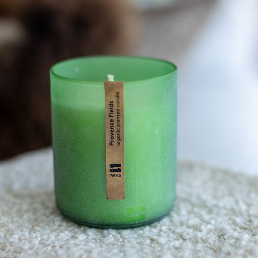 Organische Geurkaars "Provence Fields" - 100% UPcycled Glazen Houder - 18/20 Branduren