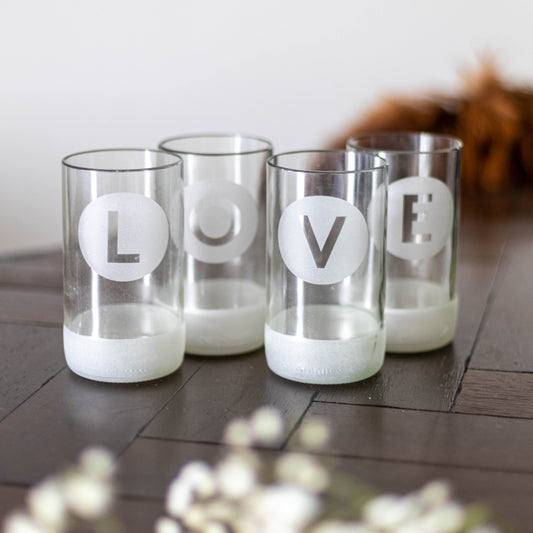UPcycled Hoge "Love" Mat Drinkglazen - Set van 4 - 350 ML - Duurzame Waterglazen